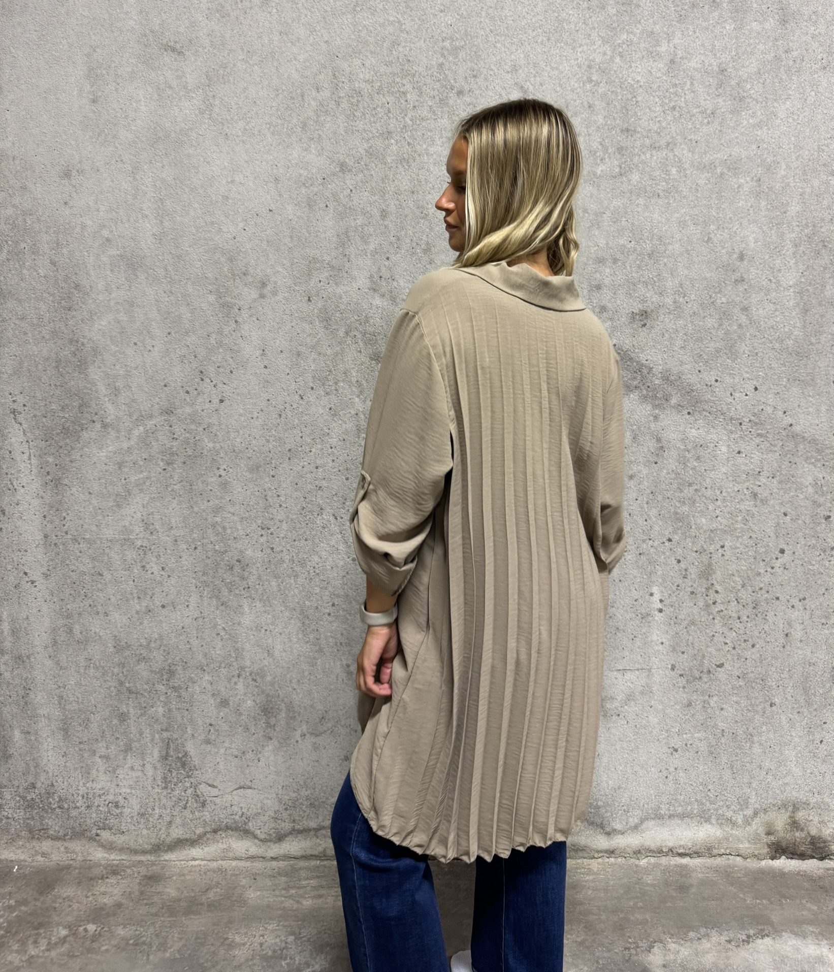 Blus med veckad rygg camel 87% viscose 13% polyamid